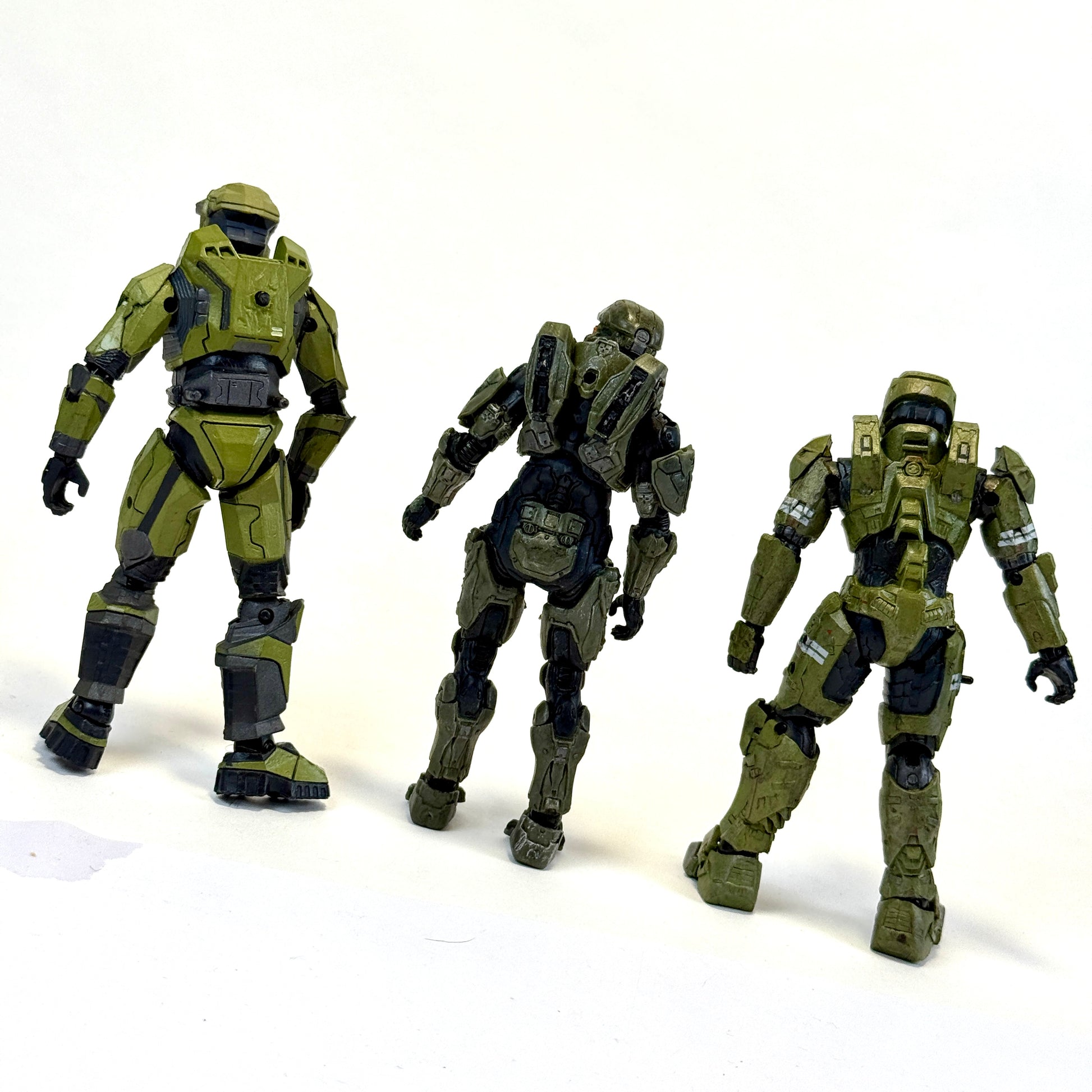 Master chief through the ages! Includes the Package, CE and Halo 4 117. The CE chief has a loose leg (see photos) but this does not affect his ability to free stand.